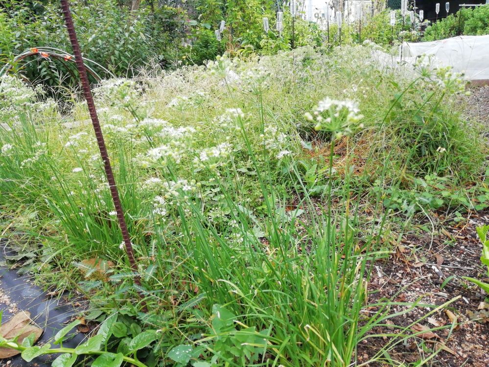 ニラの花が全開です。根元から刈り、新芽が出てくるのを待ちます。これからが、ニラの美味しい時期です。