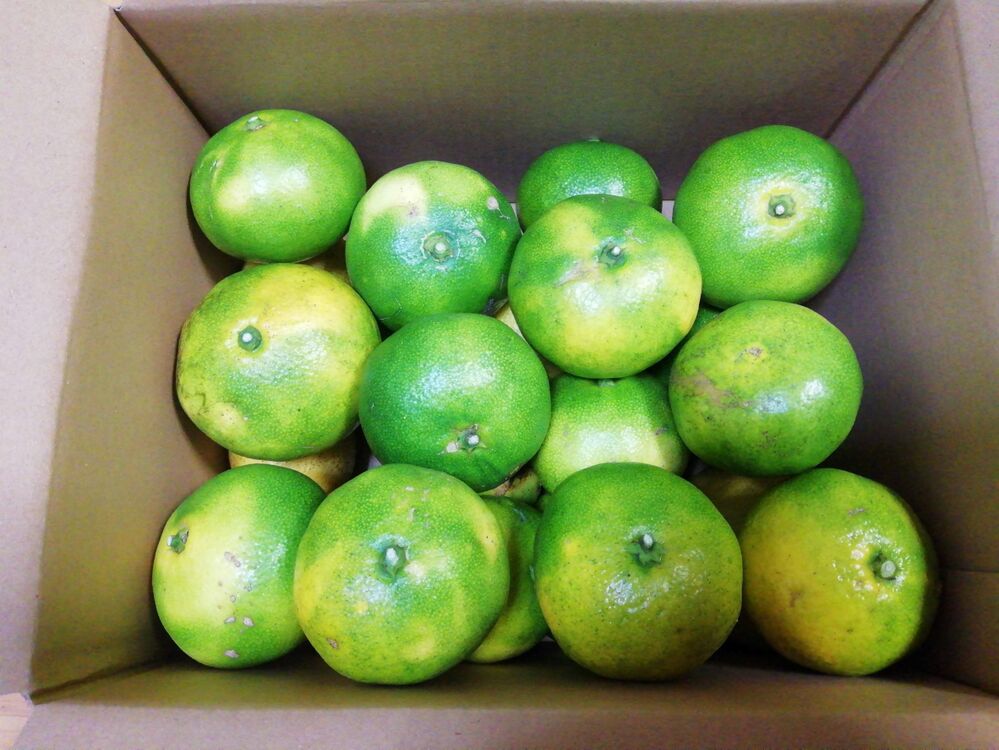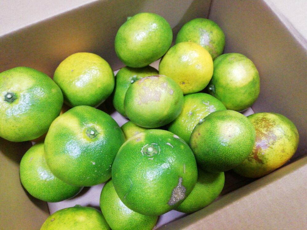 写真1・2枚目は2㎏、写真3・4枚目は3㎏の商品です。まったく農薬を使用していないため、果皮が傷んでいたり、虫がついていたりする場合がありますが、果皮も安心・安全で、有効利用することができます。