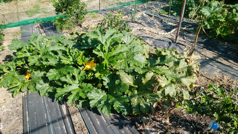 当農園では、ナスやピーマン、アマナガトウガラシなど、寒くなっても頑張っている夏野菜が多くあります。3品種植えたズッキーニは、9月以降どんどん枯れていったのですが、黄緑色の実の品種のみは、どんどん伸びて絶好調、よく実がつきます。ありがたいことです。