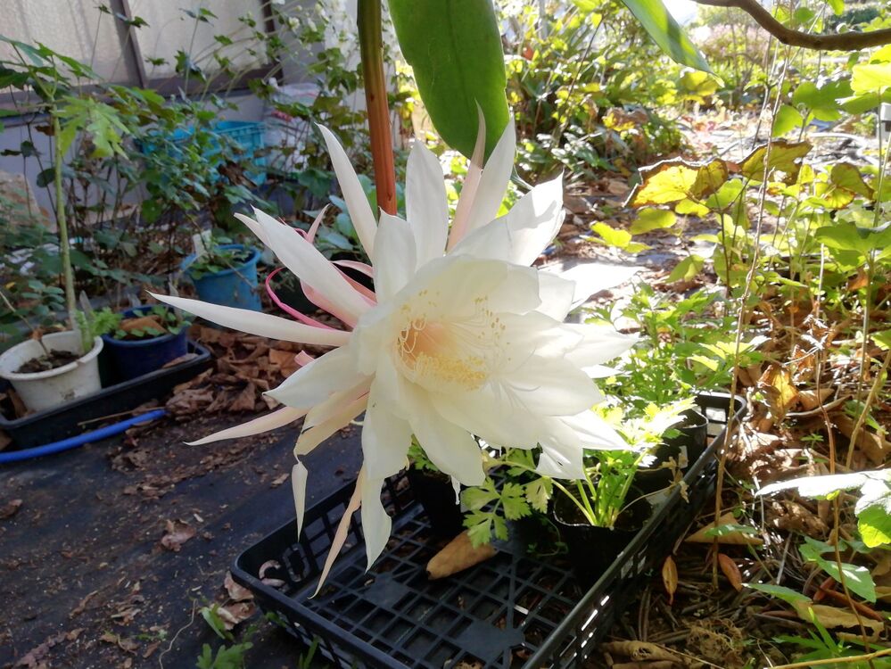 ここ数日、月下美人の花が、次々と咲いています。寒い日が続いているせいか、咲く時間もまちまちです。独特の芳しい香りと純白の大輪の花が、心を和ませてくれます。
