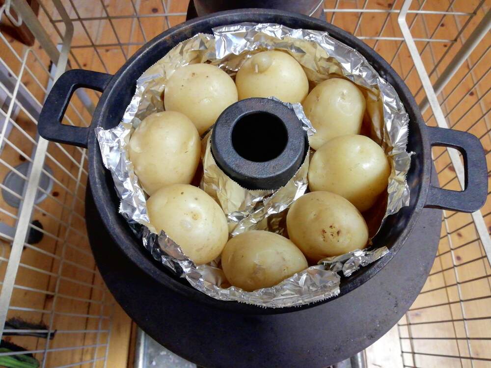 今日は、薪ストーブで、焼きジャガイモを作ってみました。バターはもちろんですが、ワサビナやパセリ、しめ鯖と合うのに驚きました。