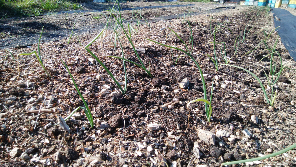11月から12月に植えたタマネギはまだ小さいですが、セット球のタマネギの収穫時期が終わる3月下頃には、葉付きタマネギとして収穫できるサイズになってほしいと思います。