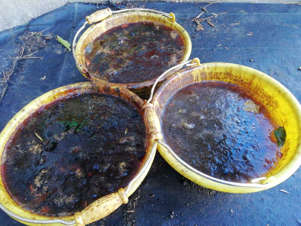 薪ストーブの煙突から採取している木酢液が、かなり溜まってきました。今朝は表面がカチンカチンに凍っていました。カミキリムシへの忌避効果があるようで、イチジクやミカンの木の、カミキリムシの侵入しそうな根元に塗ったり、過去に開けられた穴に流し込んだりしています。