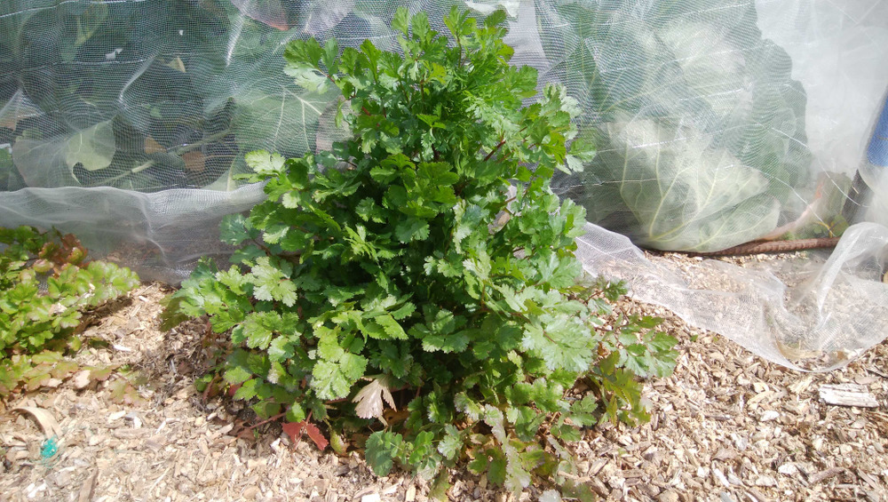 パクチーは、冬の間ロゼット型をしていましたが、3月になり、暖かくなると、だんだん立ってきます。気温の変化とともに、作物の生長の様子が変わっていきます。