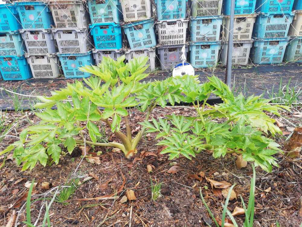 アシタバは、植えて2年目を迎えた大株、枯れた株から生えた脇芽のほか、こぼれ種から芽を出した子株が、大増殖しています。うれしい悲鳴です。