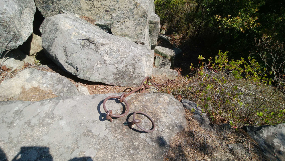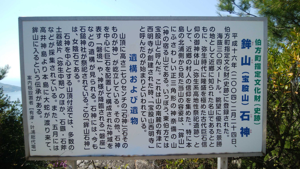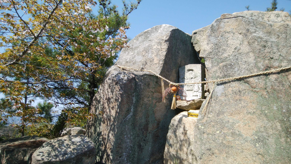 先日紹介した伯方島の宝股山の山頂には、磐座があります。今も地元の方がお世話をされています。現在は、登りやすい登山道が整備されておりますが、昔は、各集落からの登山道は険しく大変でした。有津(あろうず)からの登山道は、鎖を伝って上がれるようになっていました。