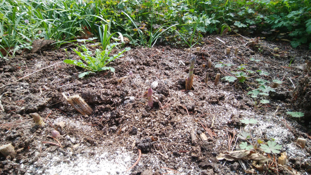 前庭のアスパラガスが顔を出しました。先日、雨がよく降っており、これから生えてくるのが楽しみです。