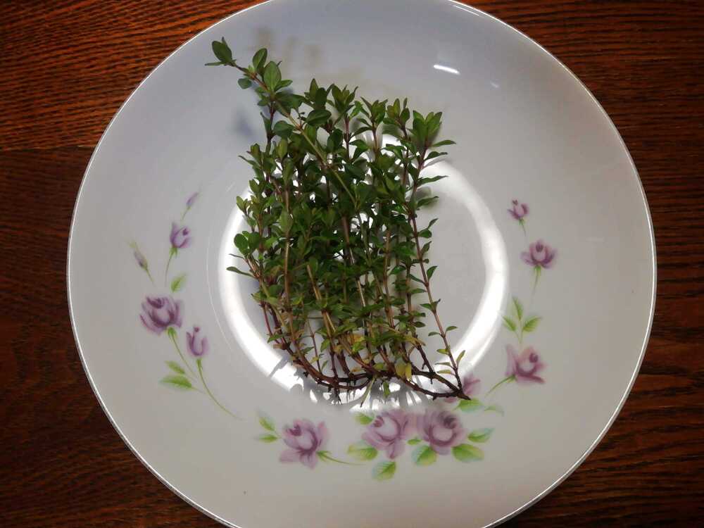 サバにクリーピングタイムの葉を散らして焼いてみました。特有の香りでサバの魚臭さを抑えてくれます。ビーツのわき菜を添えていただきました。
