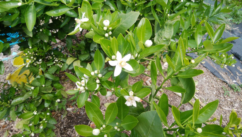 どの柑橘も、蕾が膨らみ、少しづつ花が開きつつあります。宮内イヨカンの花も開きました。セイヨウミツバチたちに、頑張ってもらいましょう。