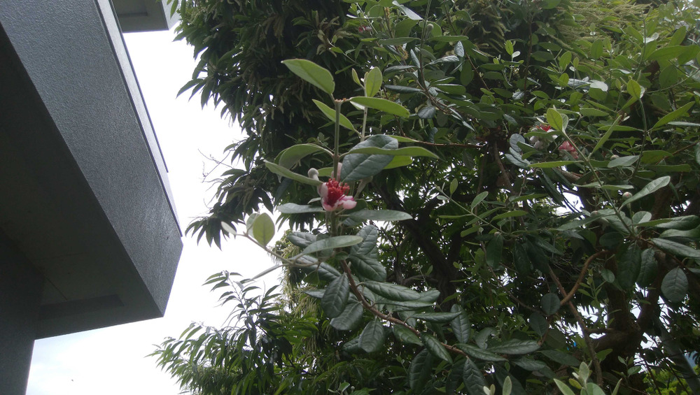 先日からフェイジョアの花が咲き始めました。メジロやヒヨが時折やってきます。これから開花が進むと、ミツバチや鳥の群れがやってきます。