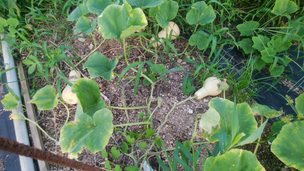 長雨続きで、バターナッツカボチャが雑草に覆われています。バターナッツカボチャ周囲の除草を進めています。これからの生長と着果も楽しみです。