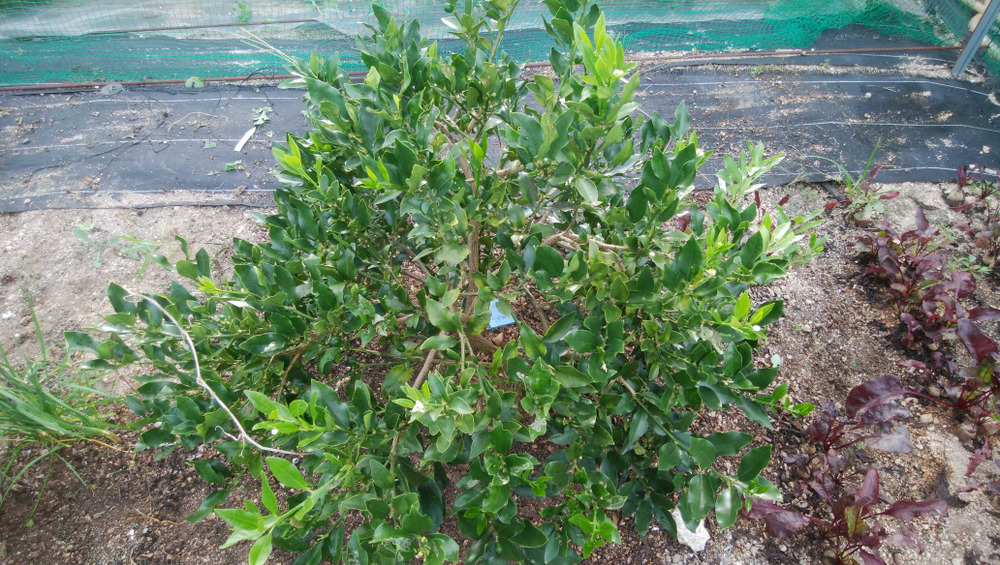 8月に花がたくさん咲いていた種なしキンカン「ぷちまる」は、果実が大きくなってきました。いつ頃熟すのか楽しみです。