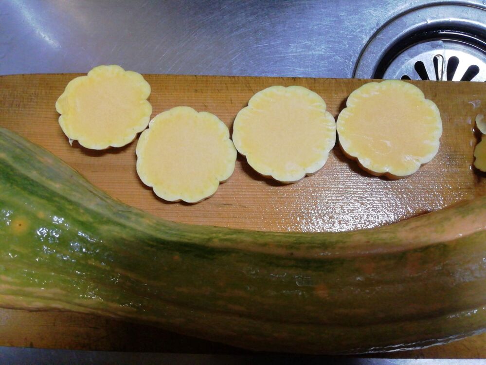 鶴首カボチャを焼いてみました。鶴首カボチャは、長い首の部分に種がないので、調理がしやすいカボチャです。それだけでなく、ねっとりとして甘い味も特徴です。ただ焼くだけでも、美味しいですよ。