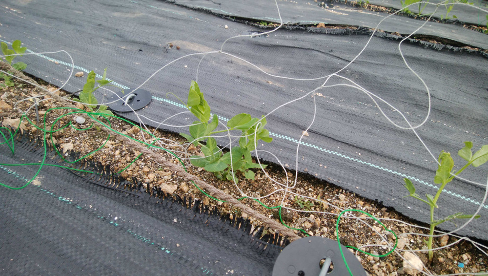 この寒い中、エンドウの本葉が出たばかりの苗、つるが少し伸びた苗、いずれも少しずつ生長しています。春の生長を楽しみにしています。