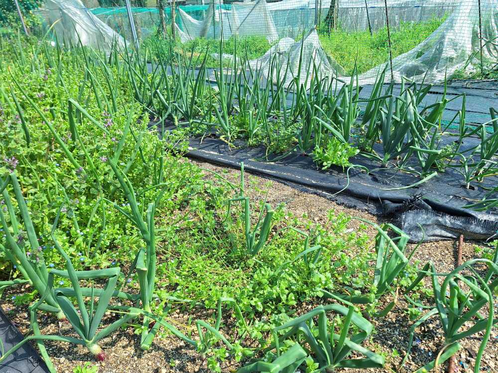 3月末から気温が大きく上昇し、植物の生長が早くなっています。タマネギの生長が早くなり、葉つきタマネギとして出荷できそうです。雑草の生長や発芽も旺盛なのは困りものです。