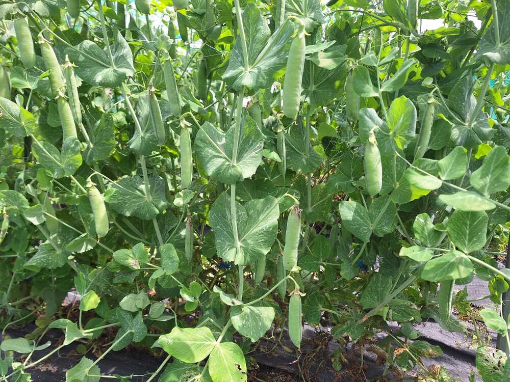 最近の暖かさで、グリンピースの実が大きくなってきました