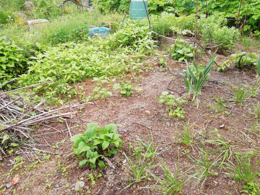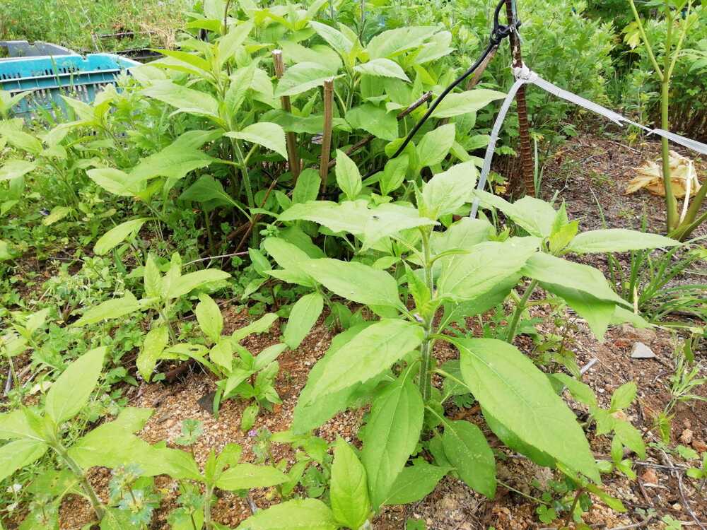今年は、ヤーコンやキクイモの生長が早いようです。苗が密植状態なので、早めに間引き、大株にしたいものです。