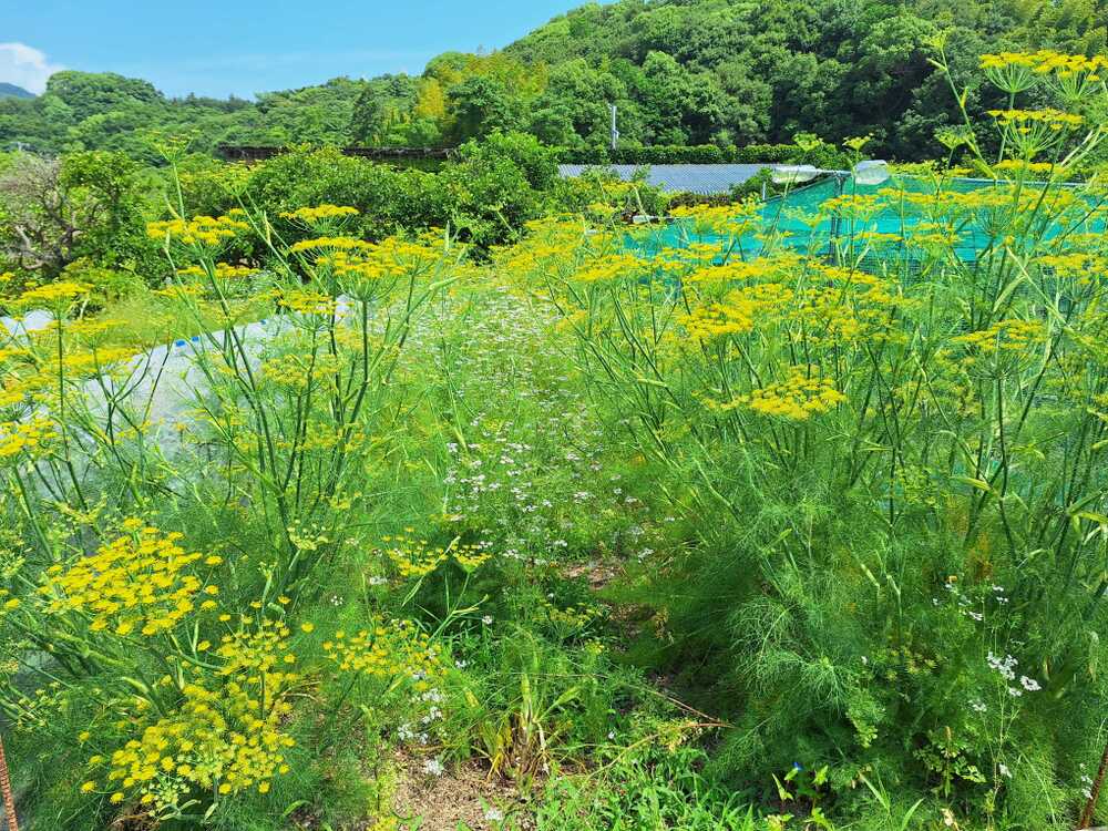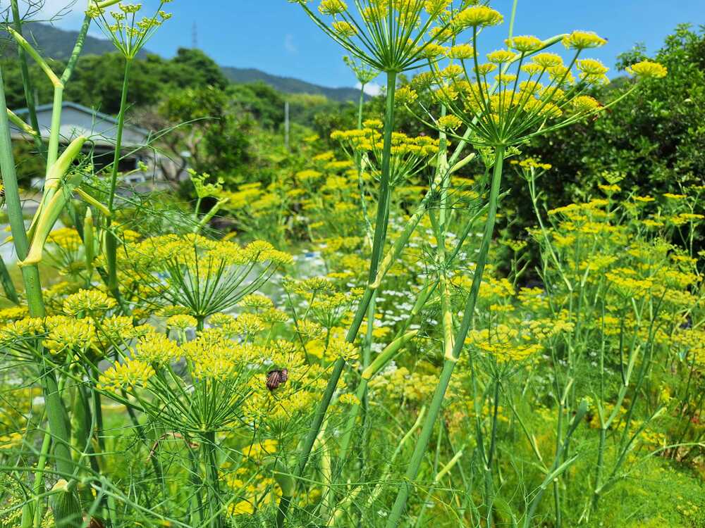 フェンネルの花が、セイヨウミツバチの大切な蜜源になっています