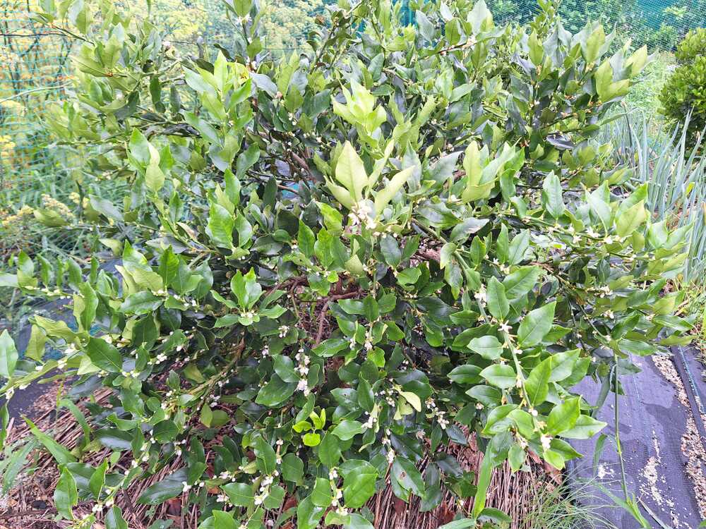 種なしキンカン「ぷちまる」に、花がたくさん咲き始めました。キンカンは四季咲きで、最近収穫し終わった木や、小さな果実が着いている木など、いろいろな状態の木があります。これからが楽しみです。