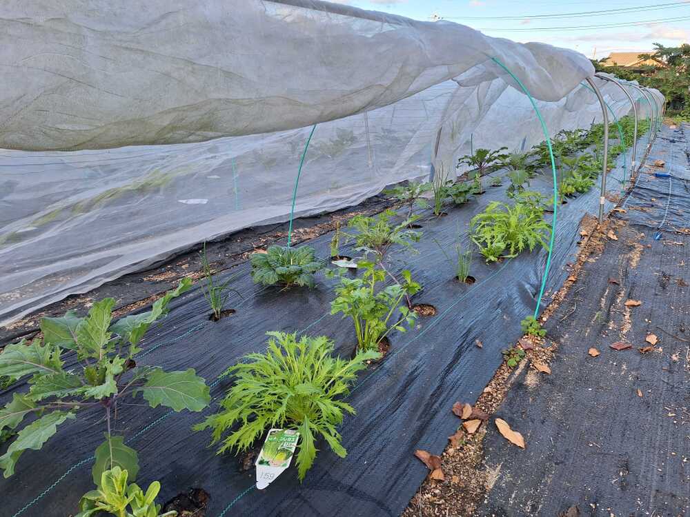 苗で植えた葉物野菜が、かなり育ってきました。セロリ、ミズナ、プチヴェール、ワケギ、ターサイ、シュンギク、レタスなど、できるだけ科の異なる野菜を混植するようにしています。これからの生長が楽しみです。