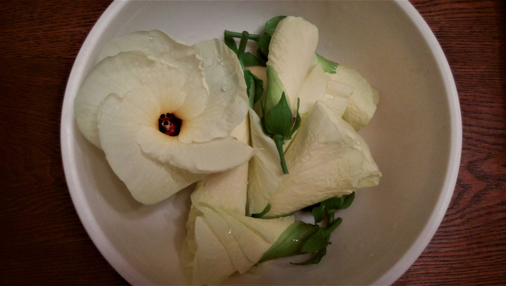 花オクラが、たくさん咲いています
