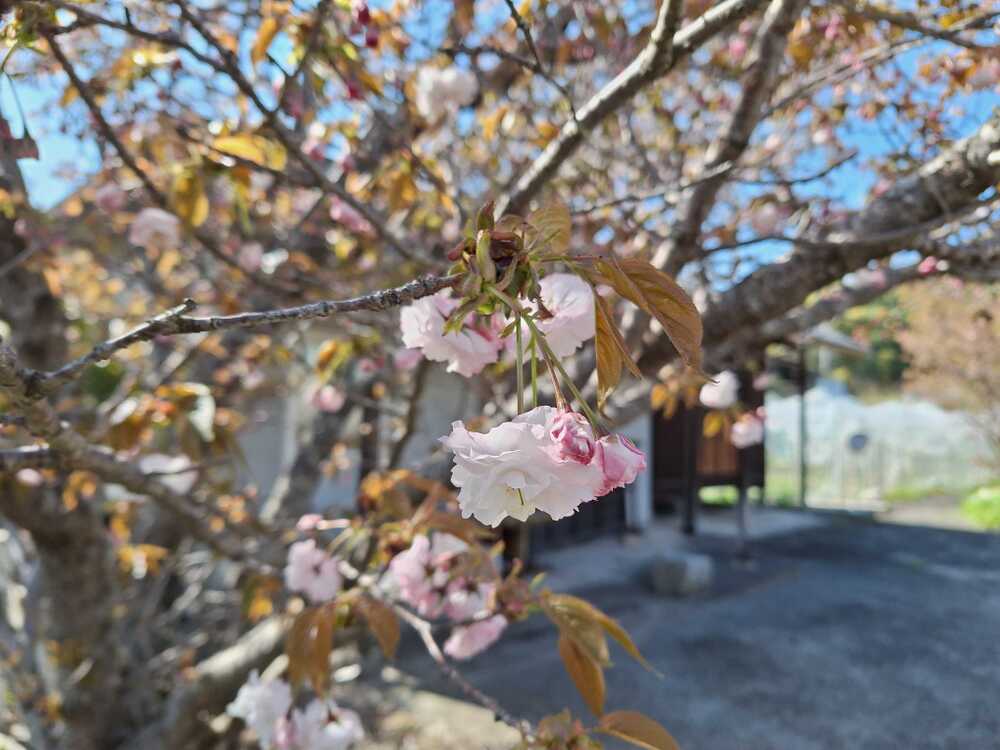 島四国24番札所の八重桜がやっと咲き始めました。島四国は、四国88か所をモデルにした、大三島の中の88か所の霊場を巡る民間信仰です。