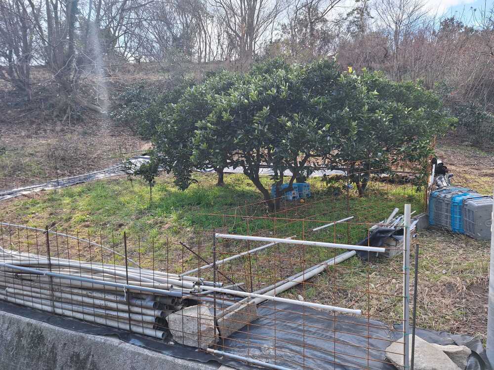 ネーブル畑に、イノシシ柵を設置しました。この畑は、イノシシに土を掘り返されて、苗木が育たず、成木も枯れています。この畑で栽培している大三島ネーブル(大三島ネーブルオレンジ)は、柑橘栽培の盛んな大三島でも、大三島と名前のつく唯一の柑橘です。成木4本は元気なので、3月以降苗木を5本植える予定です。