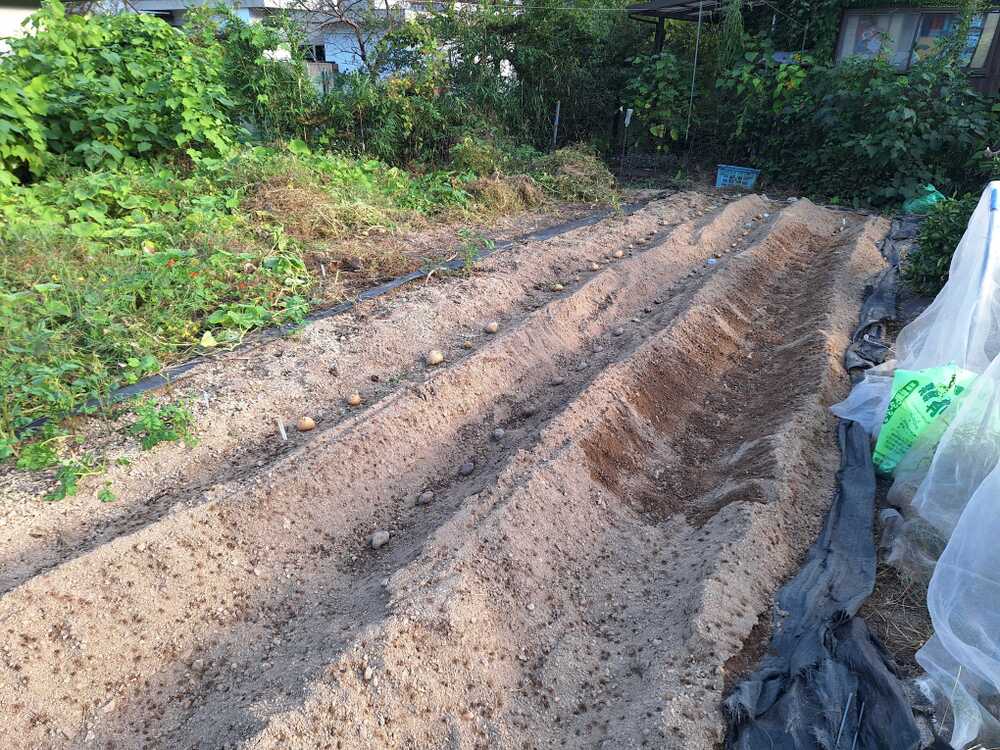 今年は、例年より暑い時期が長く、先日、やっと秋じゃがの種芋を植えました。植える時期が遅くなっていますが、秋のジャガイモの生長は早いので、楽しみです。早く土寄せをしたいものです。11月に冷え込んだり、霜が早く降りないことを祈っています。