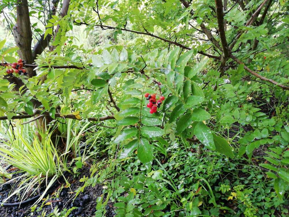 裏庭のサンショウの実が弾けていました。今年は、9月になっても暑い日が続き、サンショウの実の色づきが遅れていると思っていたのに、あっという間に色づいて、実が弾けていています。すっかり秋になっています。
