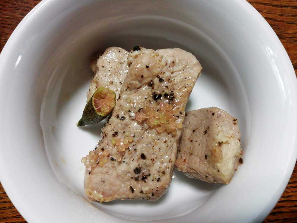 今日も、フィンガーライムを、毎食いろいろな食材にのせて試しています。今日は、豚肉ソテーにのせてみました。鮮やかな柑橘の香りや酸味は、薄い味付けの豚肉ソテーの旨味を引き立ててくれます。まだまだお試しは続きます。