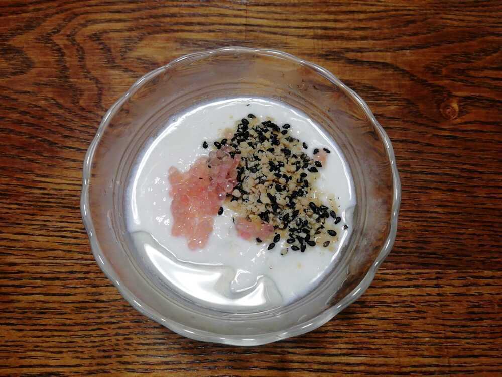 今日も、フィンガーライムを、毎食いろいろな食材にのせて試しています。今日は、ヨーグルトにのせてみました。我が家では現在、ヨーグルトに、黒ゴマ、ピーナッツ粉、亜麻仁油をかけています。フィンガーライムの鮮やかな柑橘の香りや酸味が加わることで、ヨーグルトの味や香り、風味を立体的にしてくれるようです。