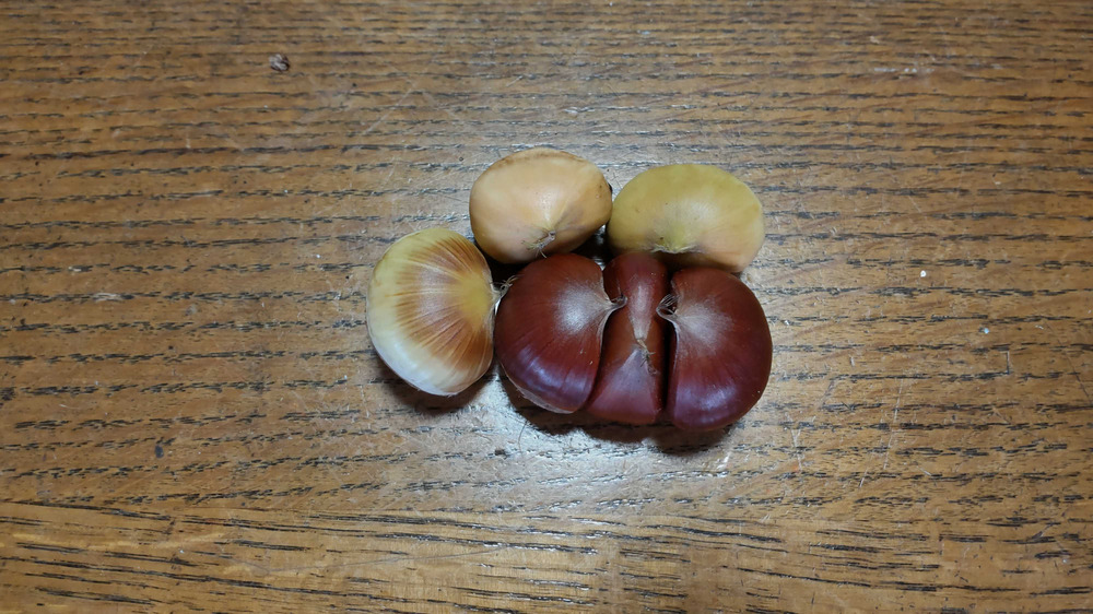 今日は、栗の実が1個落ちており、木に成っている実もいくつか取り、初収穫をしました。落ちていた実は、完全に熟していました。しかし、木に成っている実が熟すには、もう少し時間が必要なようです。