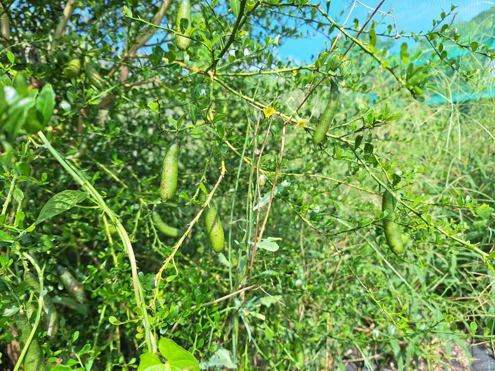 フィンガーライムの果実が少し大きくなりました。いつ熟してくるのか、これからの秋の楽しみです。