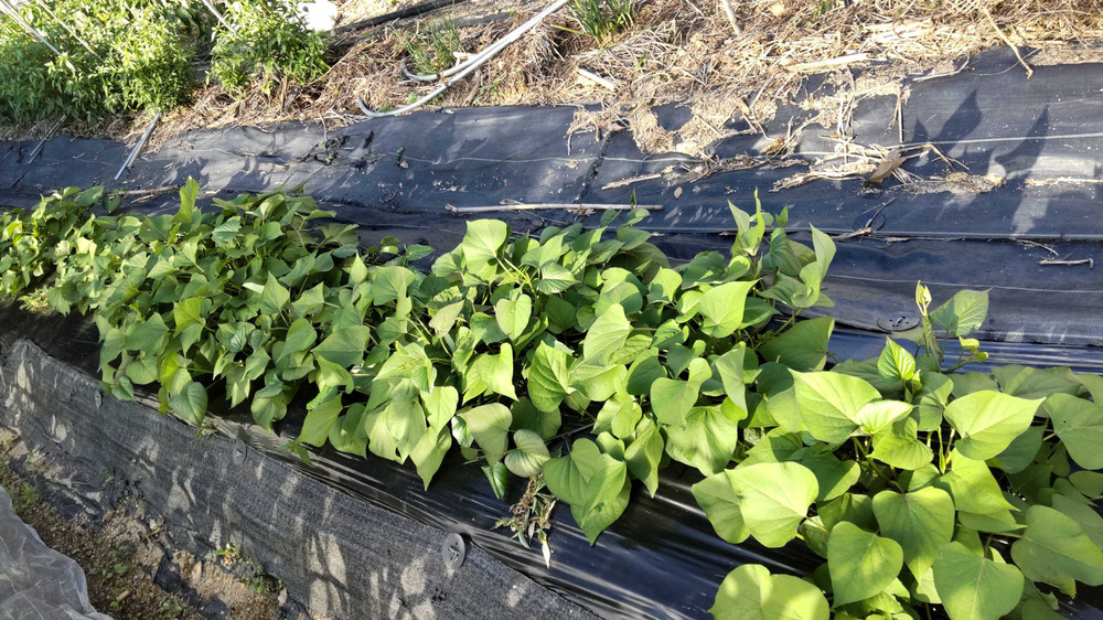 今年は、サツマイモのツルを、4月下旬に植えました。5月下旬に植えた2回目のツルも、かなり伸びてきました。昨年は、サツマイモの畝作りが遅れ、十分な生産ができませんでした。今年は、とにかく早めに植えたので、順調に生長しています。早い梅雨明けにも対応できそうです。