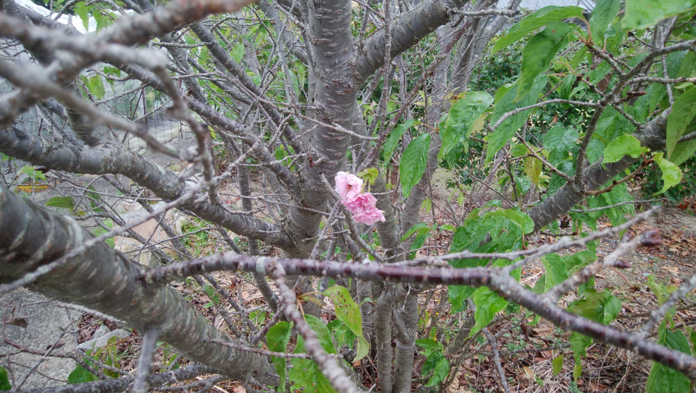 近所の島四国24番札所では、季節外れのサクラが咲いていました。火曜日は最低気温が4℃まで下がる予報です。パパイヤやピーマンなどの夏の作物は持ちこたえることができるでしょうか。
