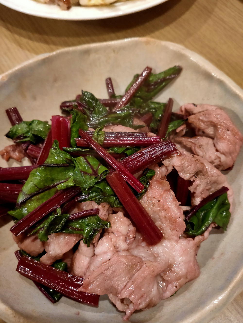 軸と葉を分けて、葉はお浸しにして、ジクはけっこう固く、茹でて、炒めて、やっと食べられるくらい。