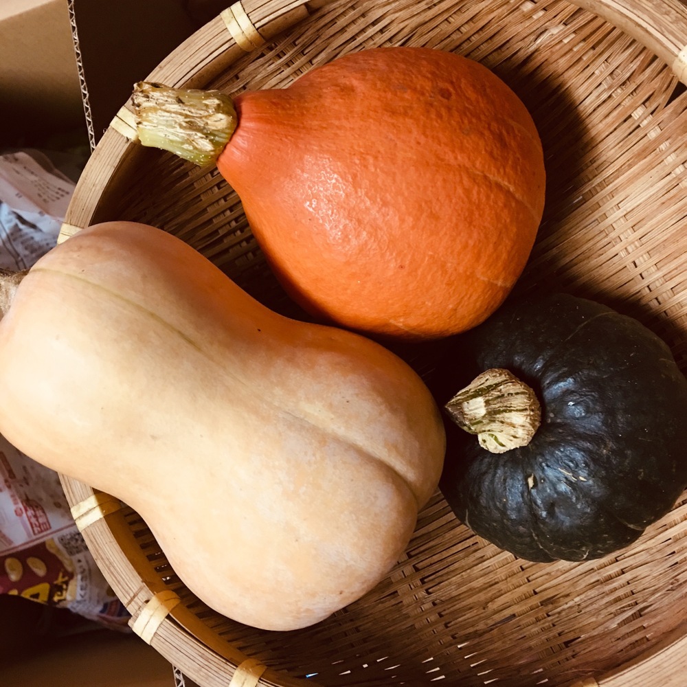 コリンキー は、生食。バーターナッツは、スープ。坊ちゃんかぼちゃは、煮付けでいかがでしょう?