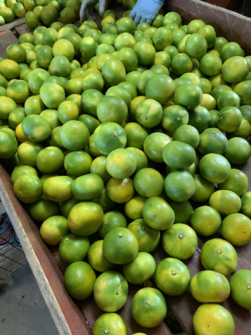 まだ黄緑ですが時期はまってくれないのでよくみてから収穫してます🍊