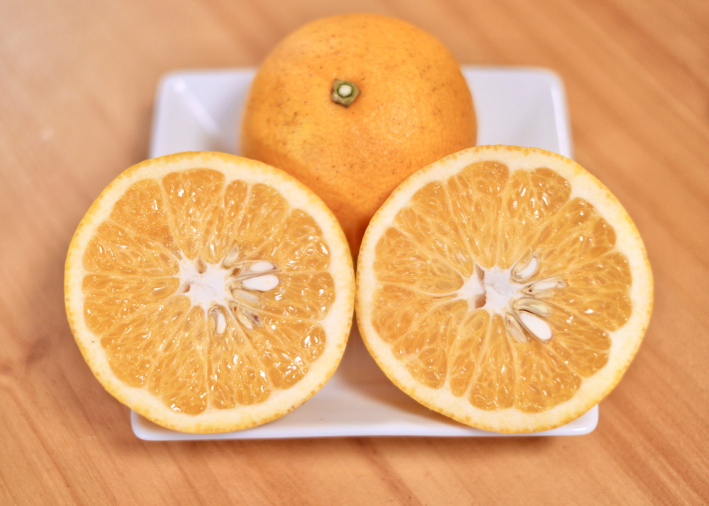 ニューサマーオレンジは、アルベド(中の白い綿の部分)と果実を一緒に食べることができる不思議な柑橘です。普通の柑橘は、アルベドの部分が、苦かったり、食べづらかったりしますが、ニューサーオレンジは、甘酸っぱいゼリーのような果実に少し甘いアルベドがとても美味しく感じられる柑橘です。