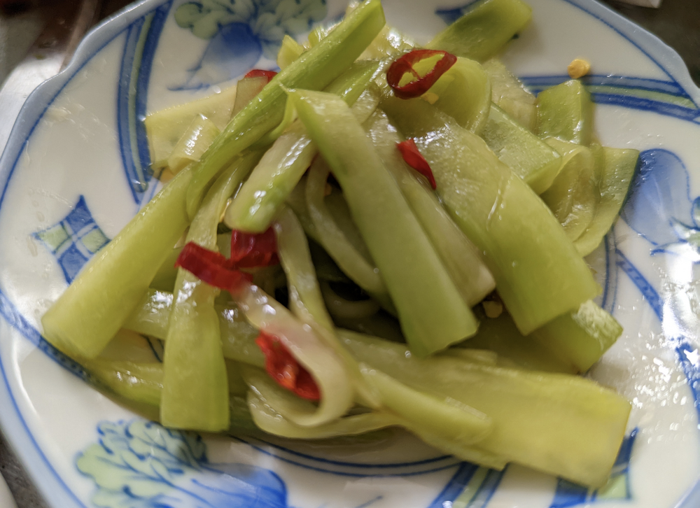 ステムレタスの茎の皮はしっかりと剥いてください。