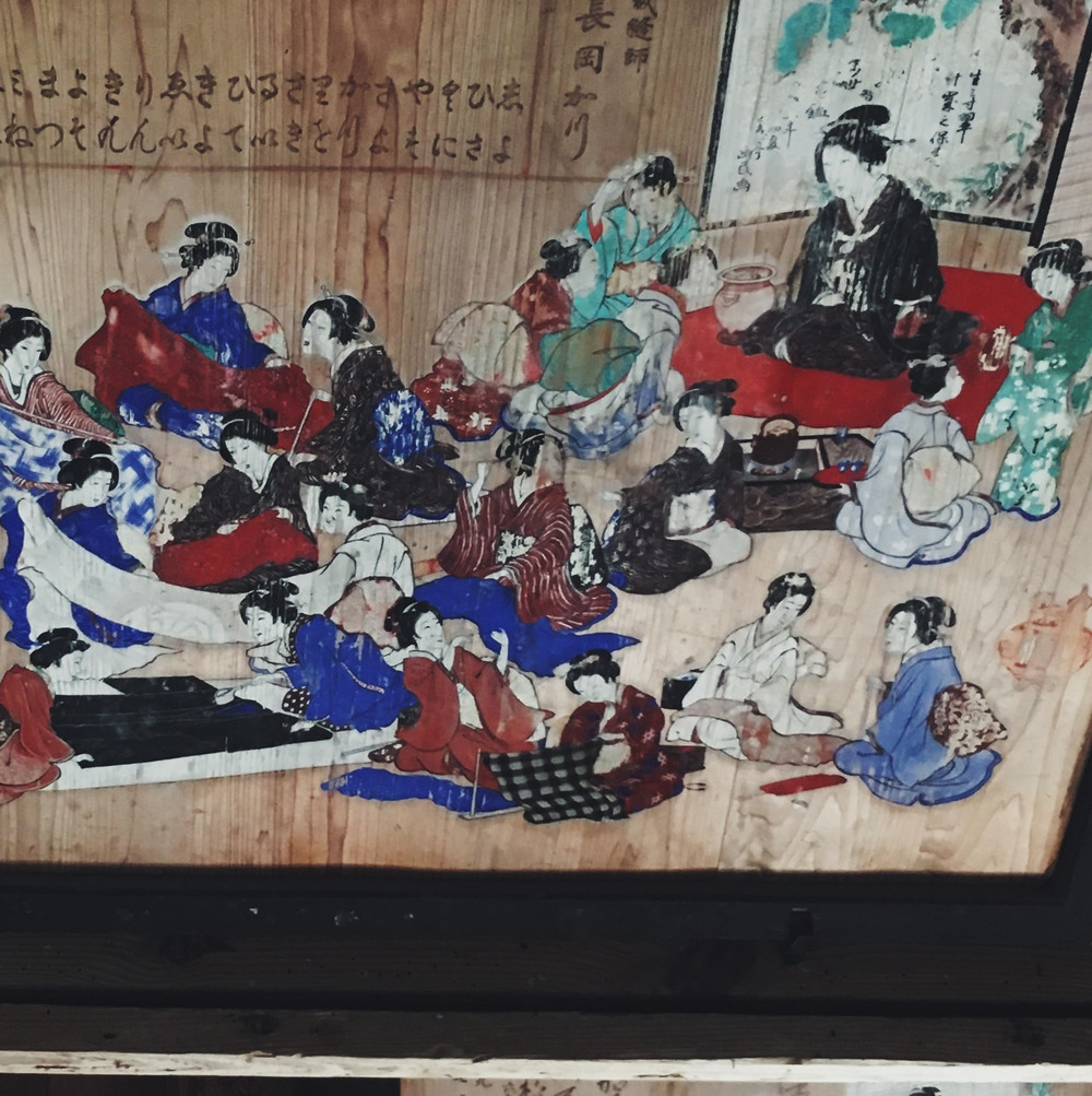 文字も色あせ、昔の字体で解読不可ですが、境内を描いたようです。