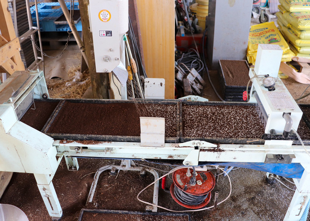 種まきに使うオート播種(はしゅ)機、育苗器など高額な農機具を近隣の農家さんと共同で購入、所有するのでコストも抑えることができて一石二鳥。
