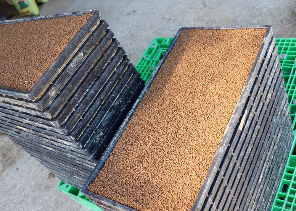 お米づくりスタート 育苗箱に種まき