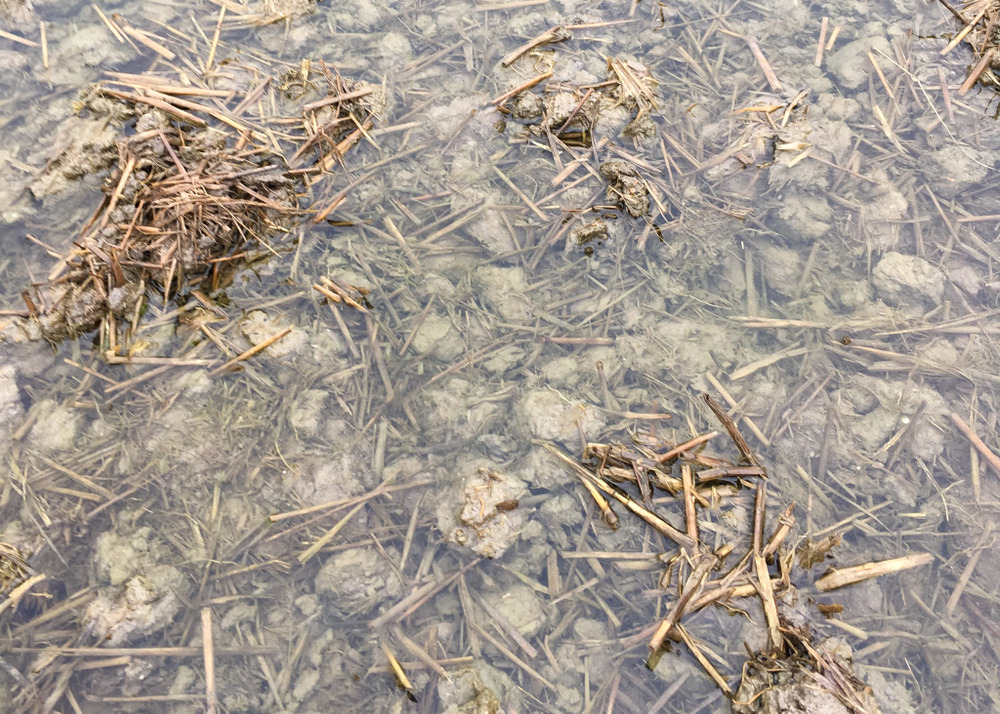 代掻きでは田んぼに水を引き、さらに細かく土を砕き、田んぼを均一にならします。例えるならトロトロのスープ状態。
