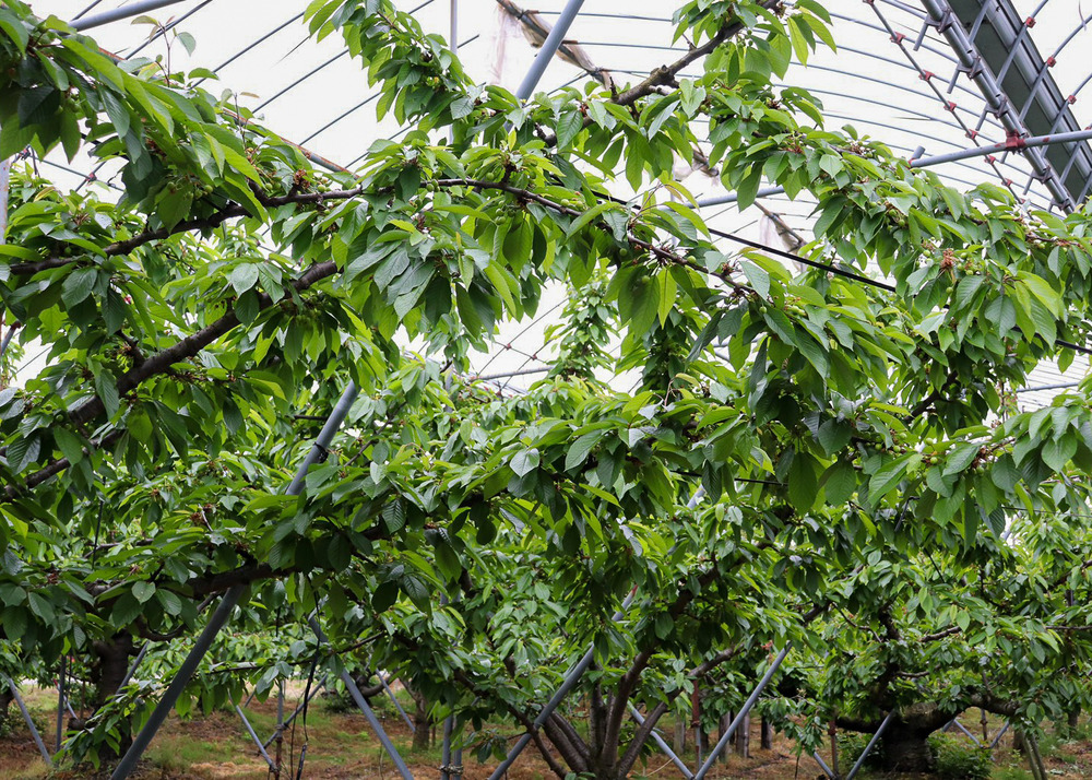滴下することで実同士が接することなく、十分な空間を作ることで太陽の光をたっぷり浴び、真紅に輝く糖度抜群のさくらんぼが収穫できます。