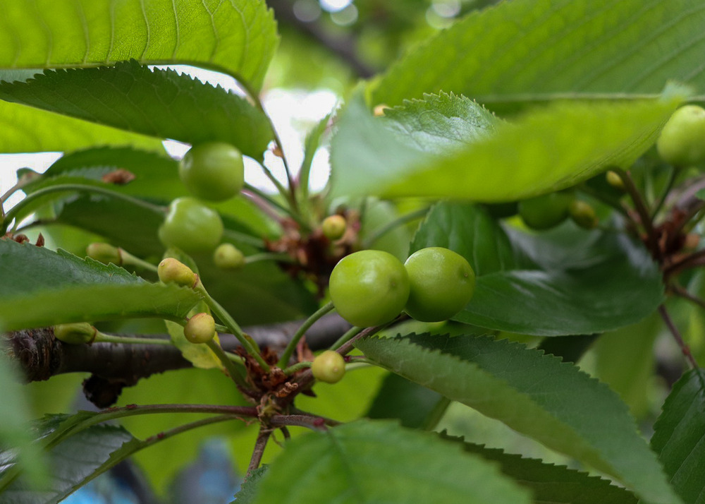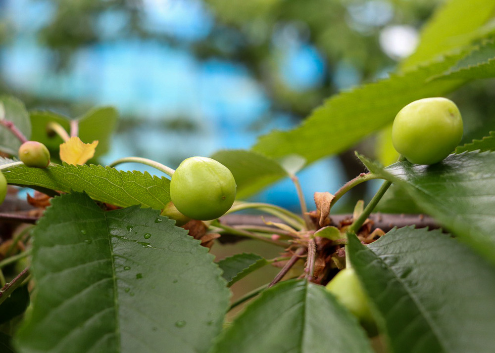 さくらんぼの花が咲き終わり受粉が上手くいくと、一房にたくさんの実がなります。