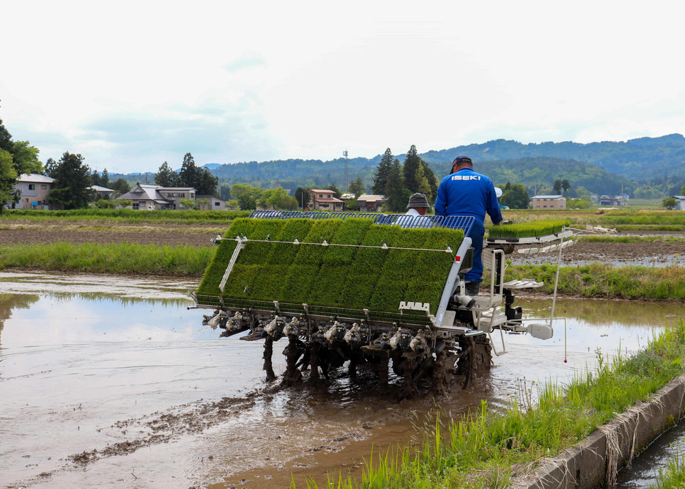 田植え機を使い苗を植え、肥料を撒いていきます。