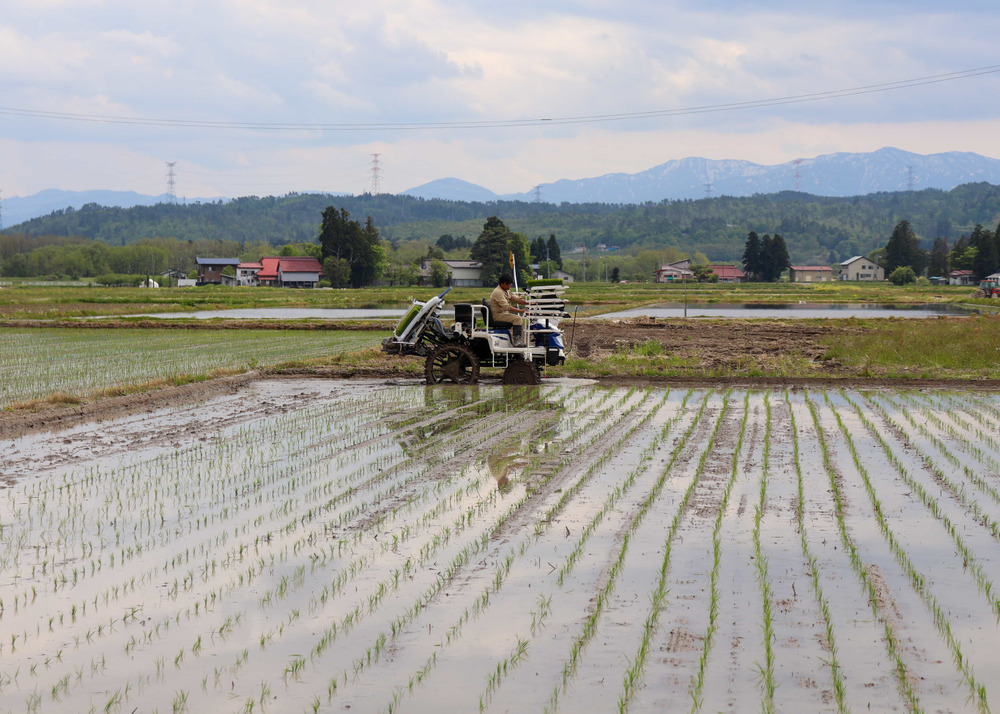 田植え機を使い苗を植え、肥料を撒いていきます。