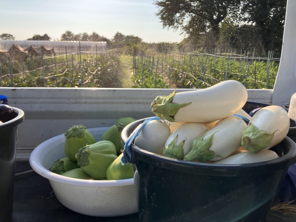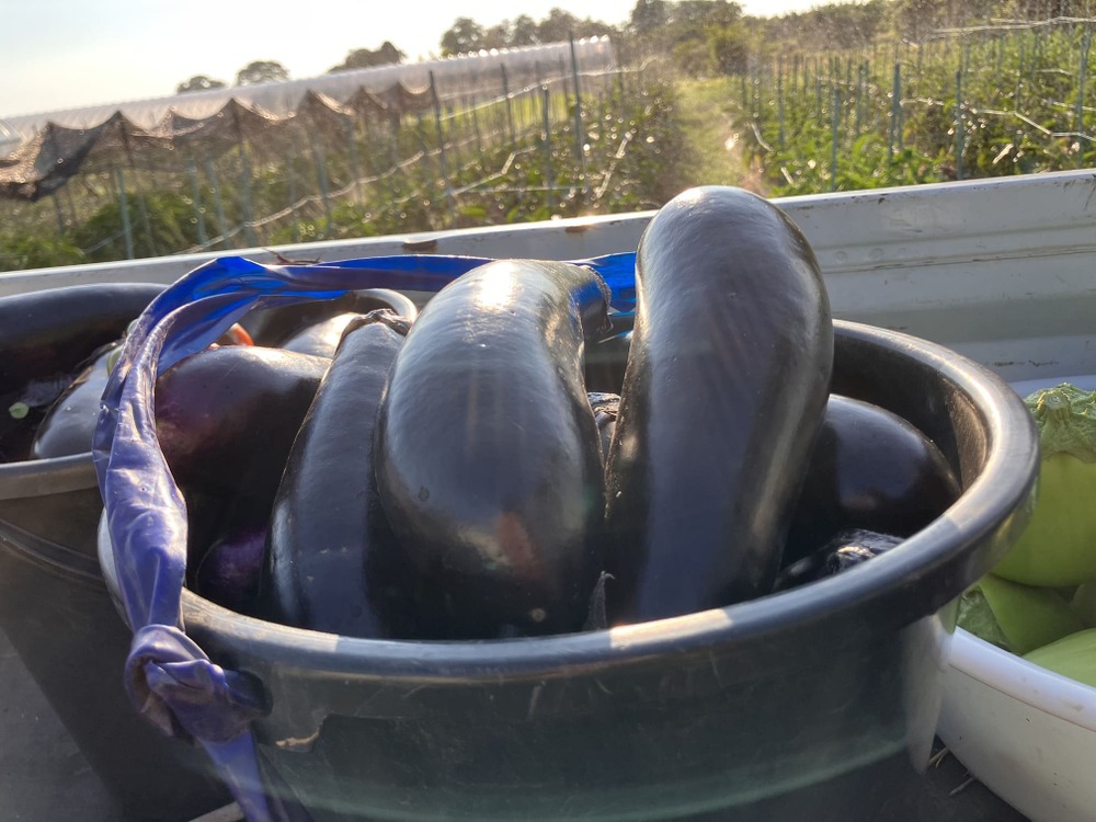 畑直送の新鮮ナスで、夏の食卓を楽しく彩ってください〜!