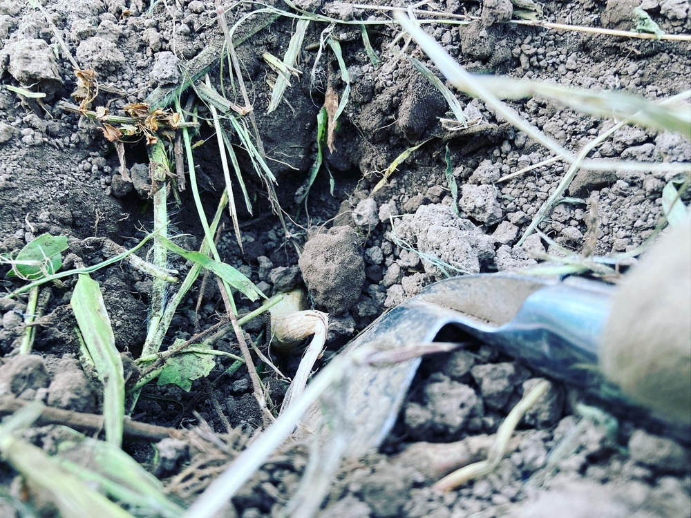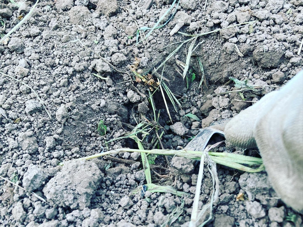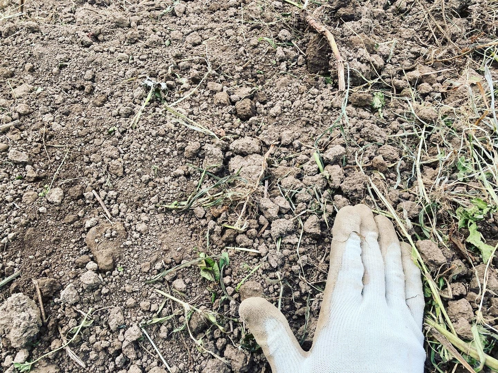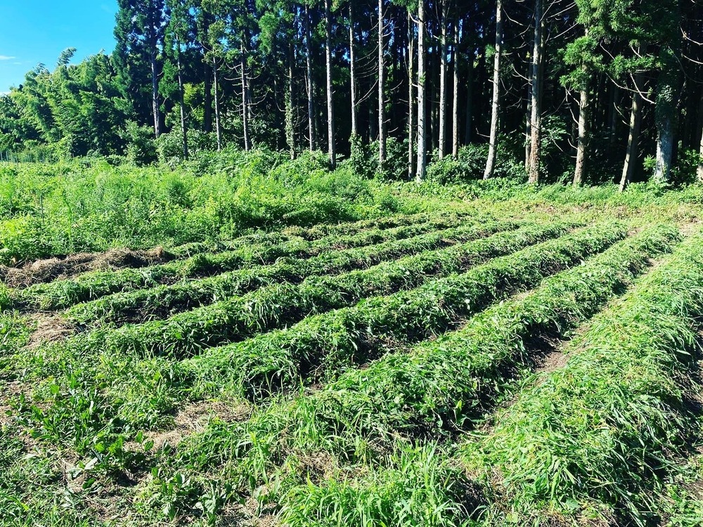 植え付けた後に周りの草を刈って、ウネの上に乗せてちょっと保湿して終了です。お肌もウネも保湿が大事笑